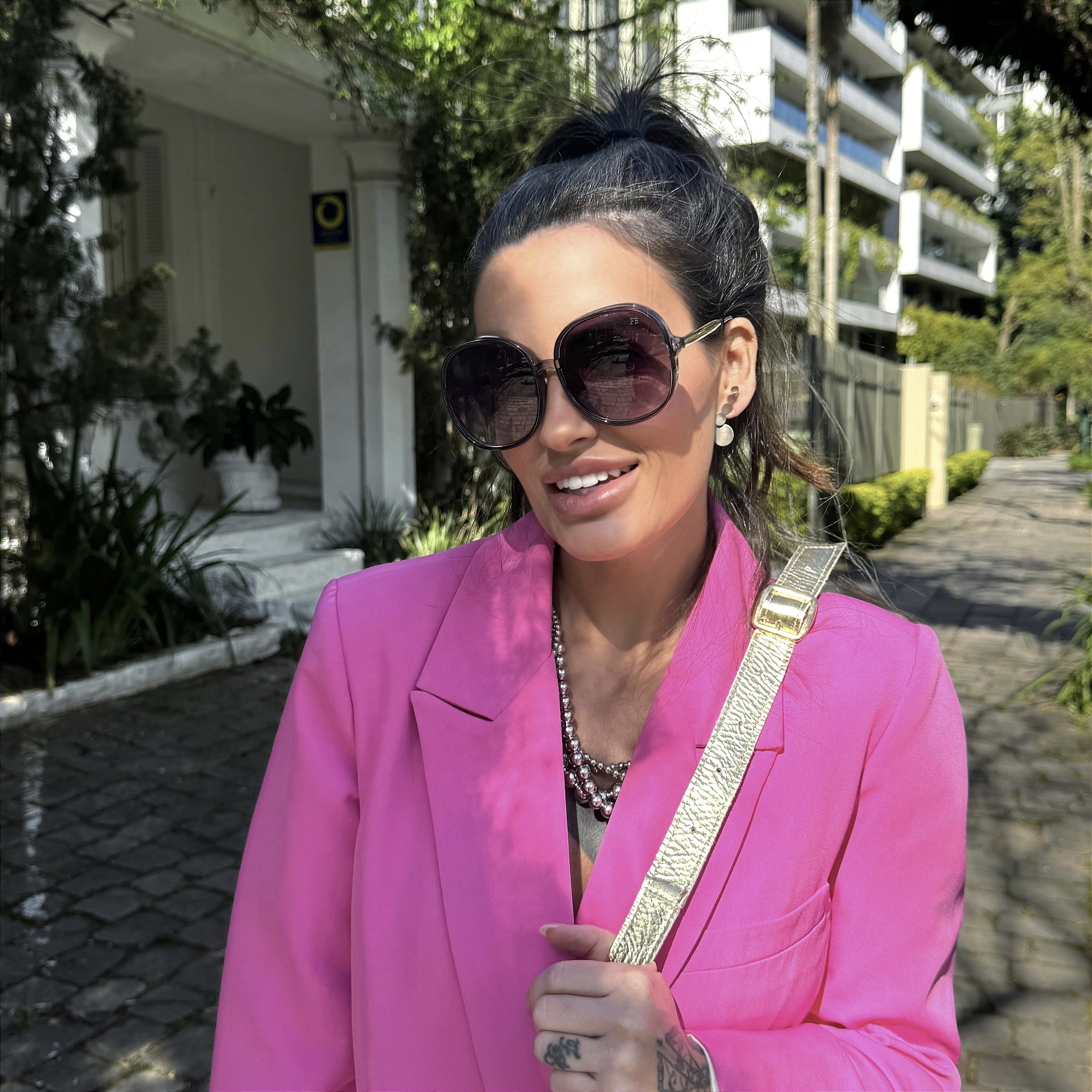 ÓCULOS DE SOL REDONDO GRANDE CINZA - MODELO LOU